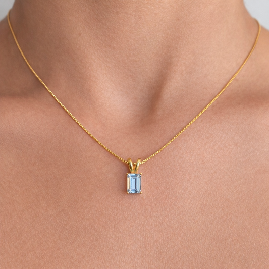 Blue Topaz Necklace | Rectangle Pendant | 18K Gold Plated
