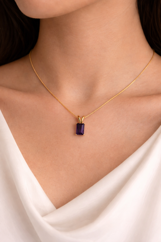 Amethyst Necklace | Rectangle Pendant | 18K Gold Plated