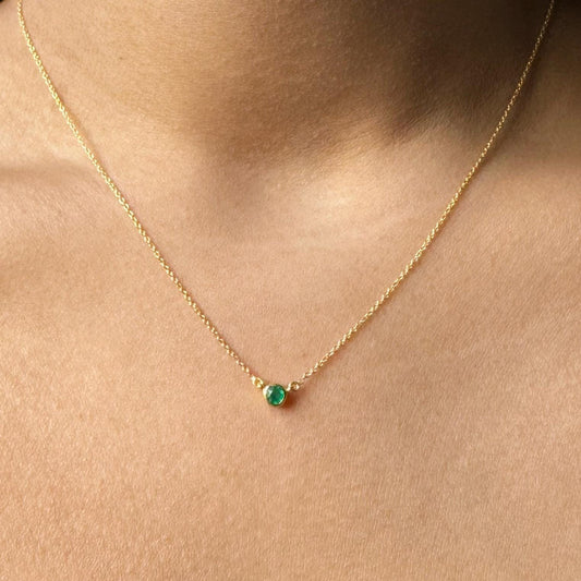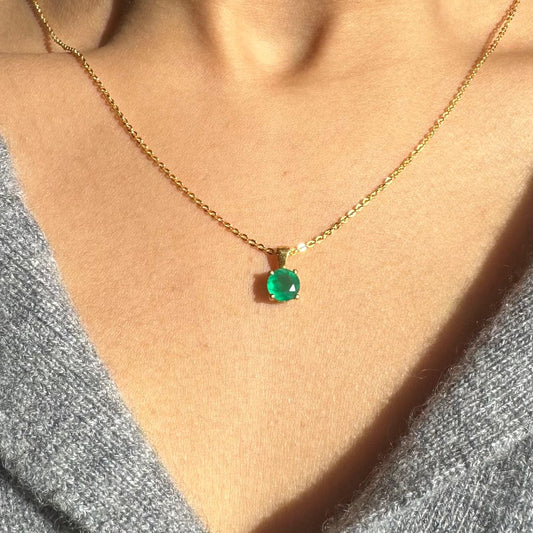 Green Onyx Necklace | Round Set Pendant | 18K Gold Plated