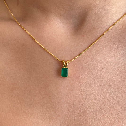 Green Onyx Necklace | Rectangle Pendant | 18K Gold Plated