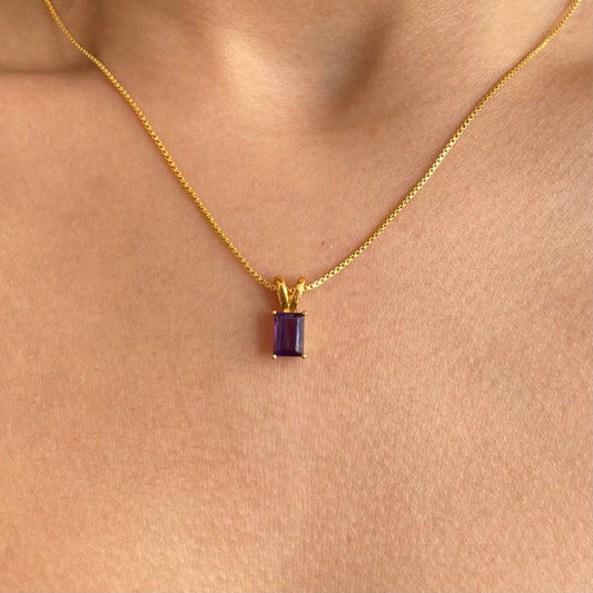Amethyst Necklace | Rectangle Pendant | 18K Gold Plated