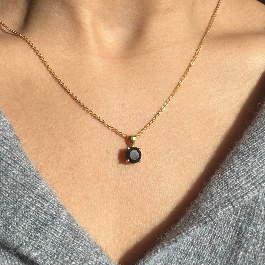 Black Onyx Necklace | Round Pendant | 18K Gold Plated