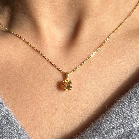 Citrine Necklace | Round Pendant | 18K Gold Plated