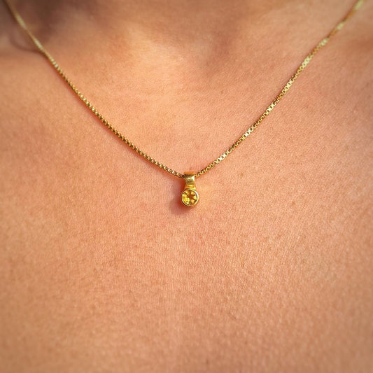 Citrine Necklace | Round Pendant | 18K Gold Plated