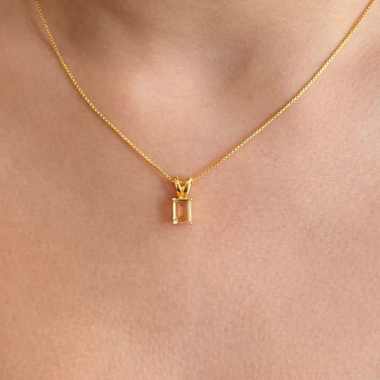 Citrine Necklace | Rectangle Pendant | 18K Gold Plated