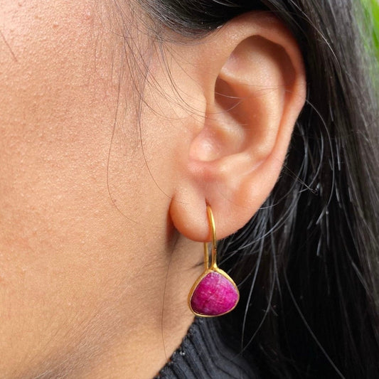 Red Ruby Earrings | 18K Gold Plated | Drop Earrings