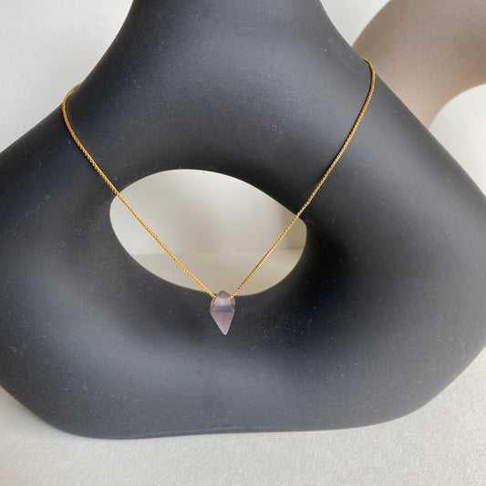 Purple Amethyst Pyramid Pendant Necklace | 18K Gold Plated | Gemstone Necklace