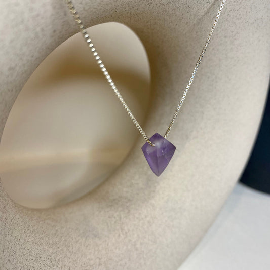 Purple Amethyst Pyramid Pendant Necklace | Sterling Silver | Gemstone Necklace