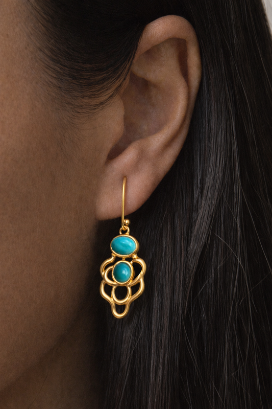 Turquoise Figurine Earrings | 18k Gold Plated | Dangle Earrings