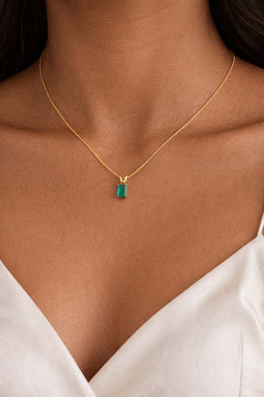 Green Onyx Necklace | Rectangle Pendant | 18K Gold Plated