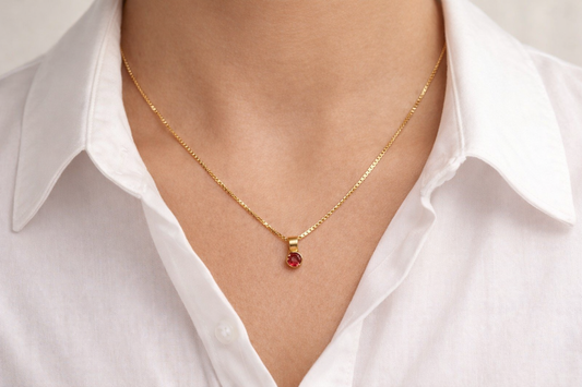 Garnet Spotlight Necklace | Round Pendant | 18K Gold Plated