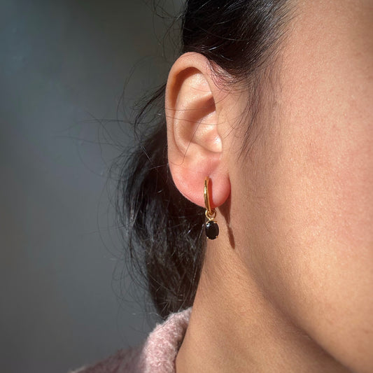 Black Onyx Earrings | 18k Gold Plated | Huggie Hoop Earrings