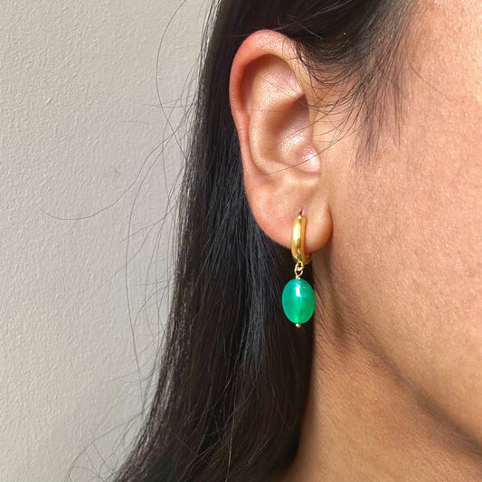 Green Onyx Earrings | 18k Gold Plated | Huggie Hoop Earrings