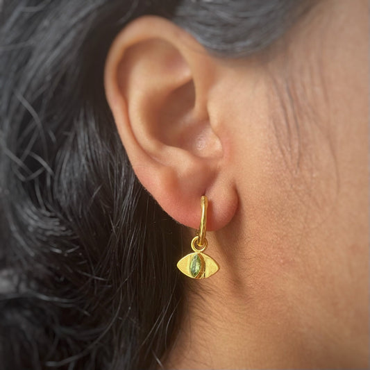 Evil Eye Peridot Earrings | 18k Gold Plated | Huggie Hoop Earrings