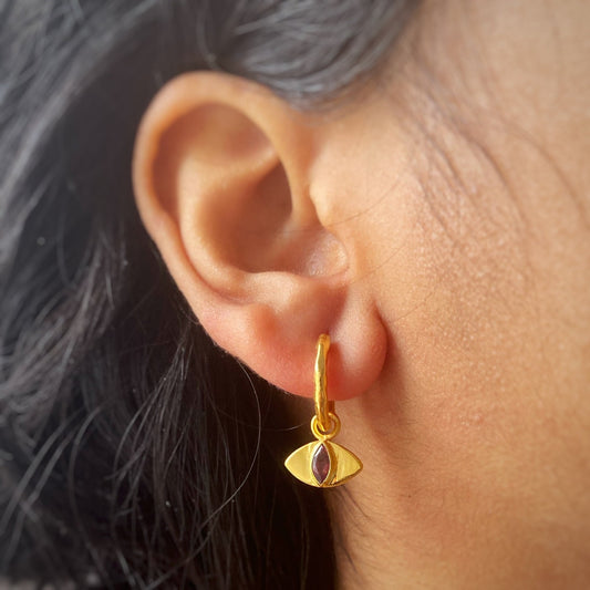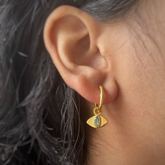 Evil Eye Topaz Earrings | 18k Gold Plated | Huggie Hoop Earrings