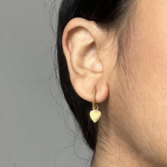 Gold Heart Charms Earrings | 18k Gold Plated | Huggie Hoop Earrings