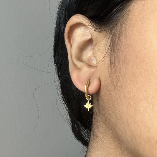 Gold Star Charms Earrings | 18k Gold Plated | Huggie Hoop Earrings