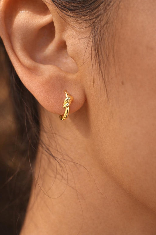 Gold Mini Lucky Knot Earrings | 18k Gold Plated | Huggie Hoop Earrings