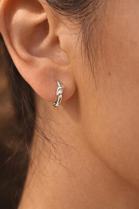 Silver Mini Lucky Knot Earrings | Sterling Silver | Huggie Hoop Earrings