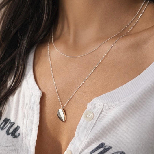 Sterling Silver Pebble Pendant | Figaro + Snake Chain Necklace Stack