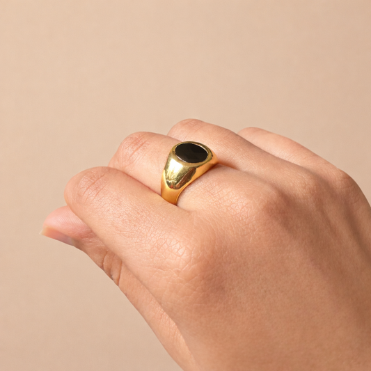 Black Onyx Ring | Coco Signet Ring | 18K Gold Plated