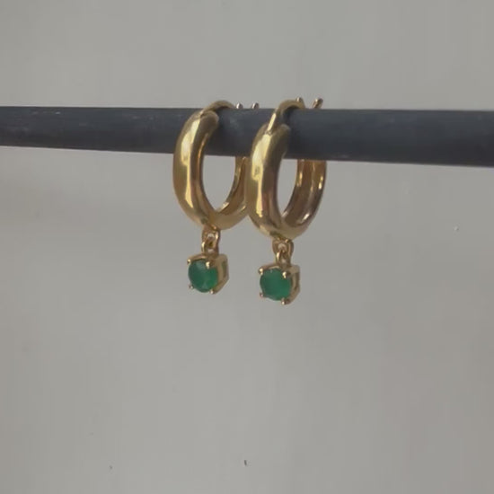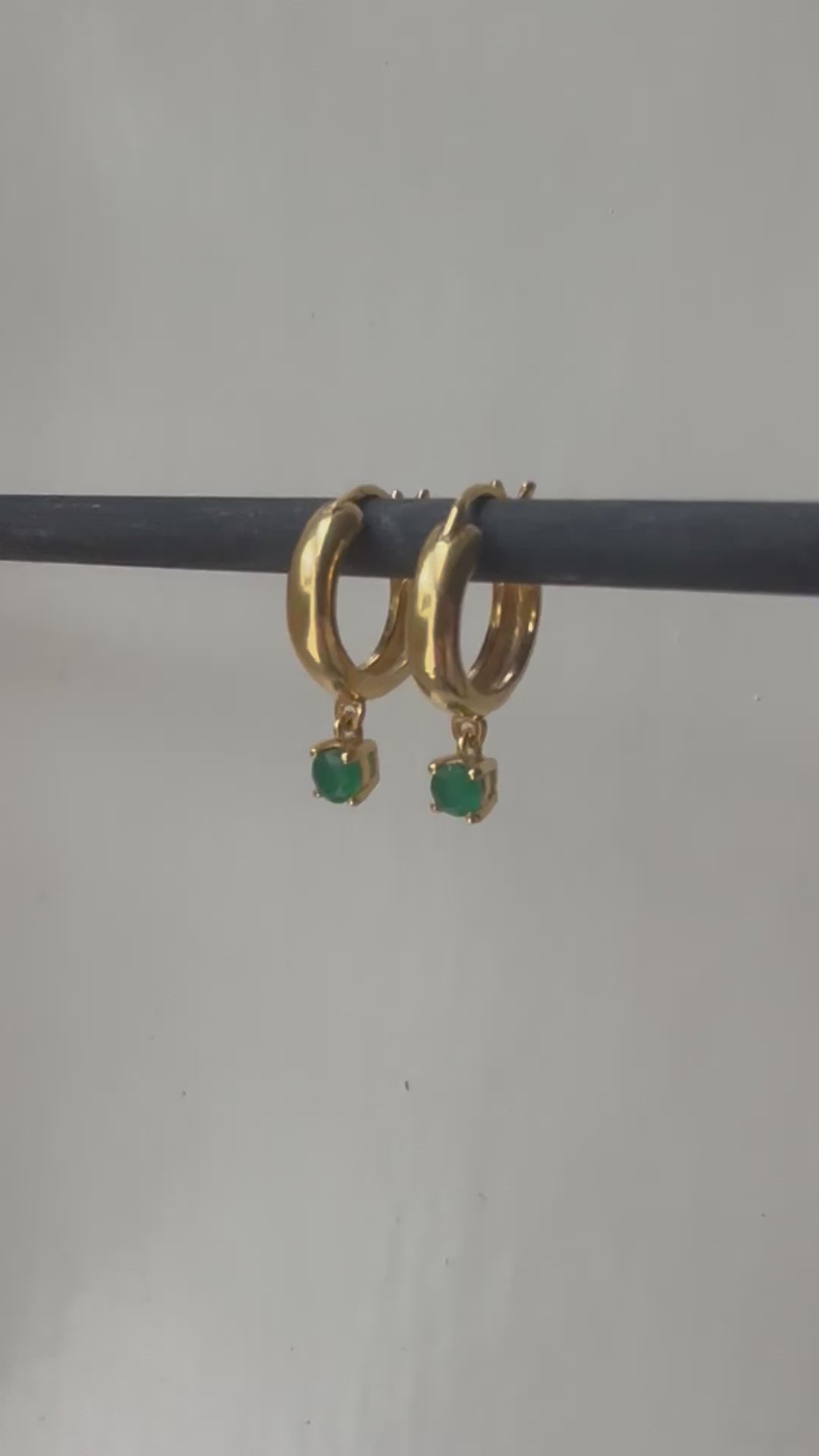 Green Onyx Earrings | 18k Gold Plated | Genova Huggie Hoop Earrings
