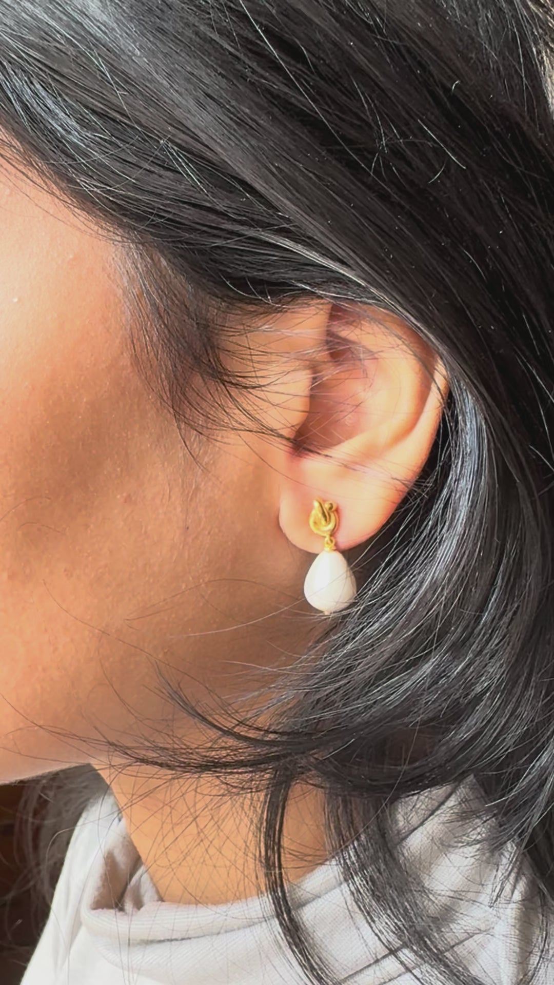 Lucky Knot Pearl Earrings | 18K Gold Plated | Stud Dangle Earrings
