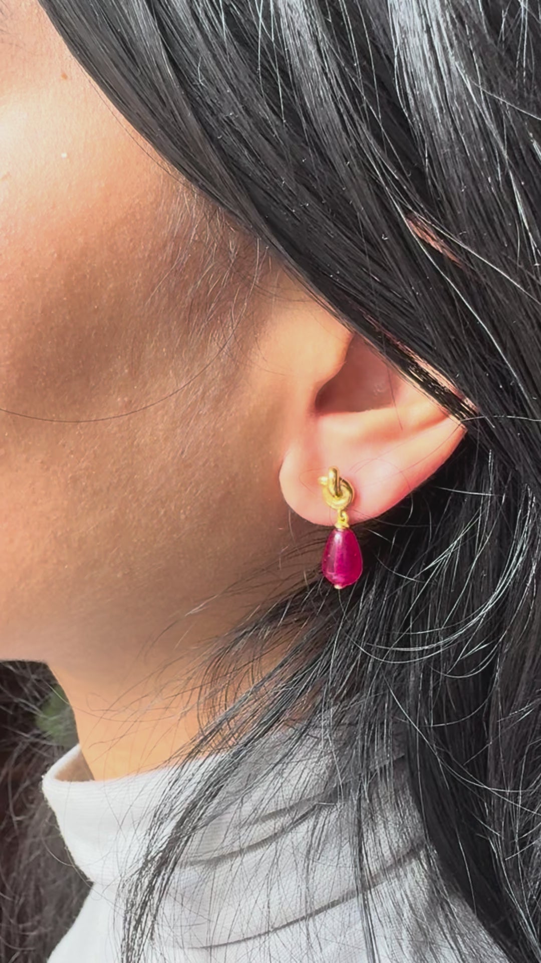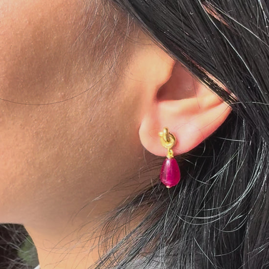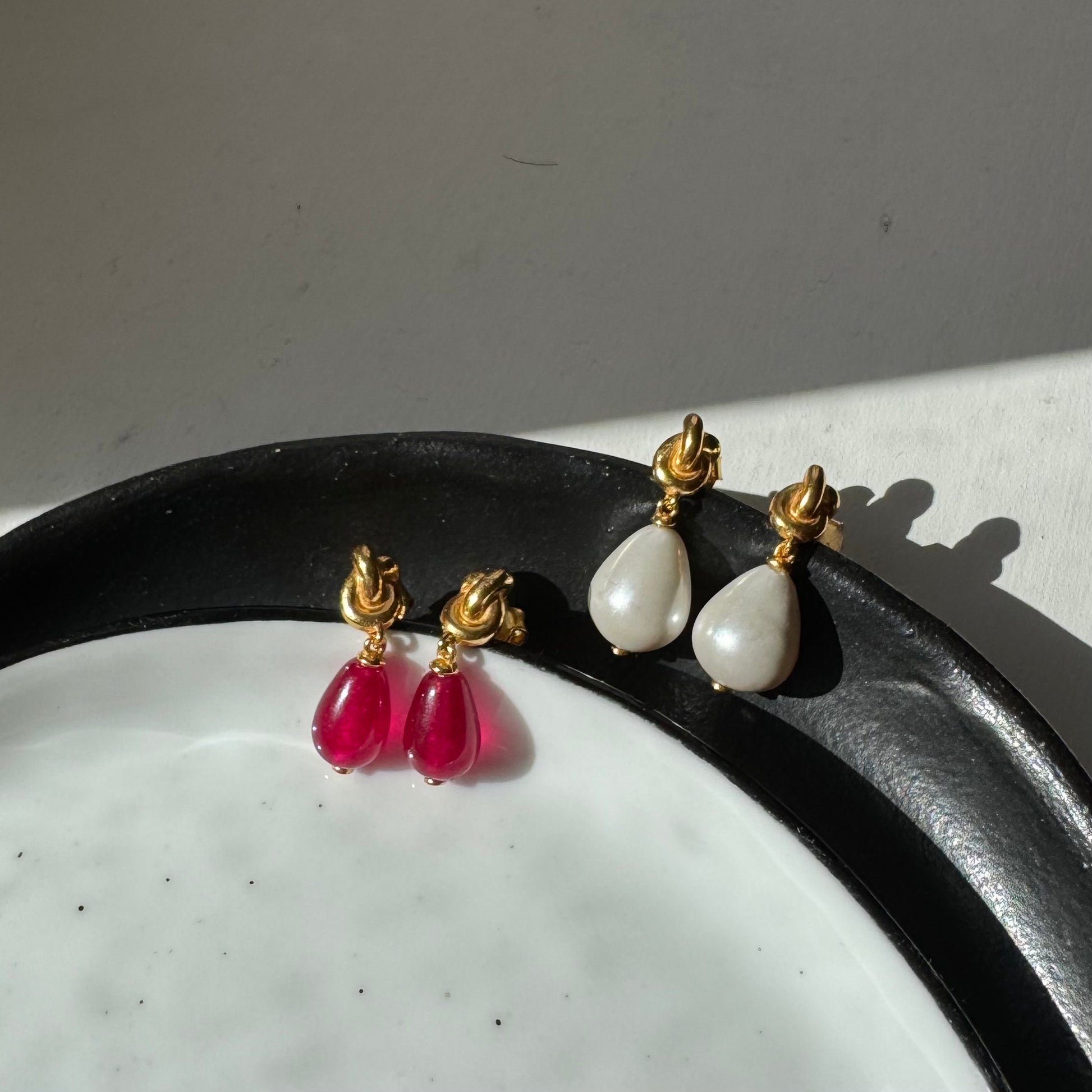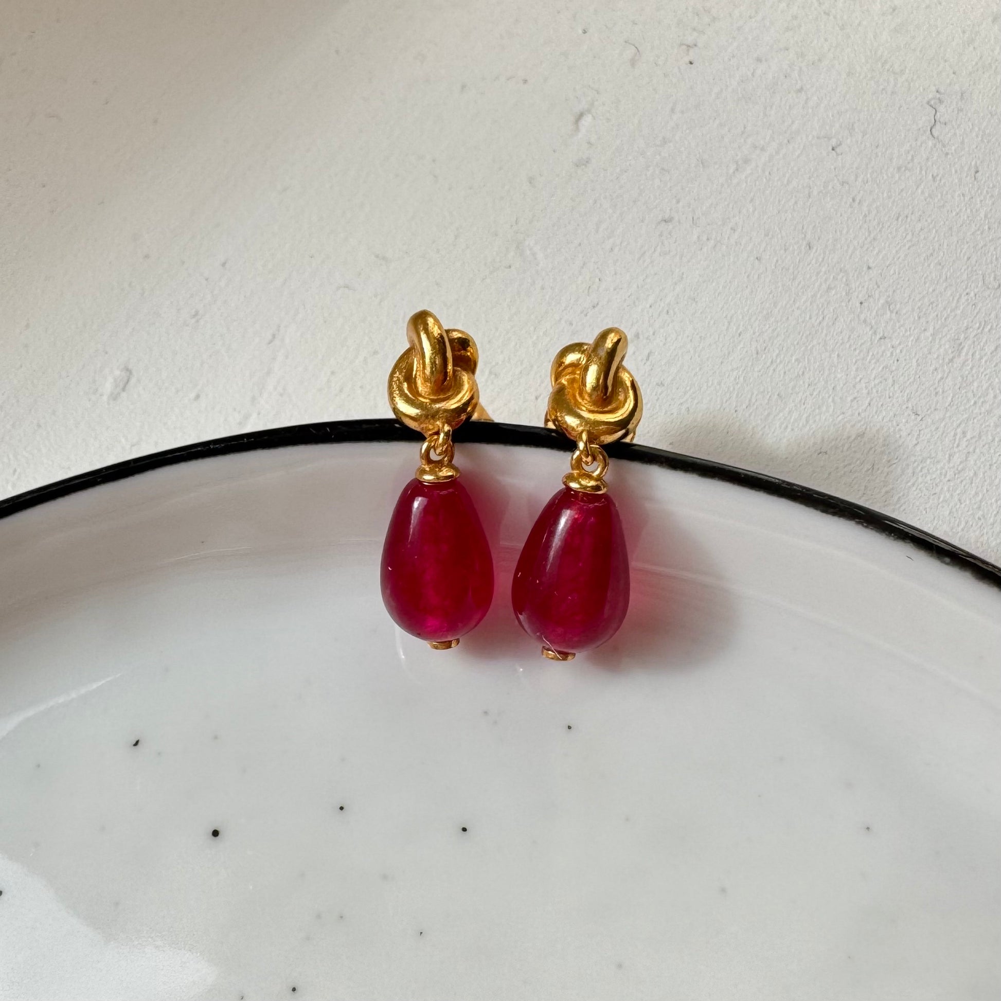 Lucky Knot Red Quartz Earrings | 18K Gold Plated | Stud Dangle Earrings