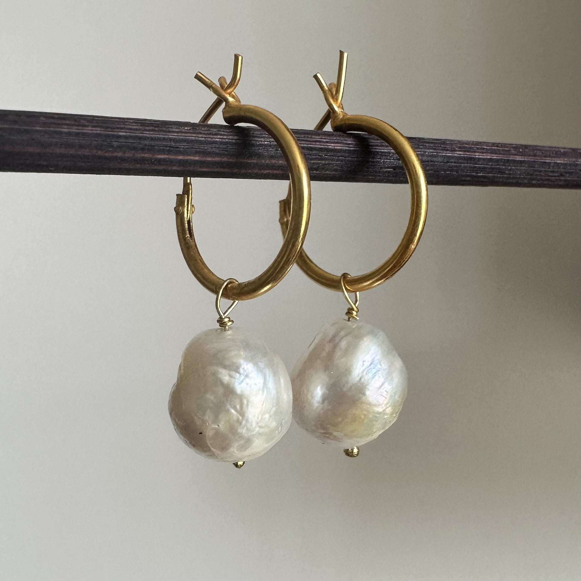 Natural Pearl Earrings | 18K Gold Plated | Huggie Hoop Earrings