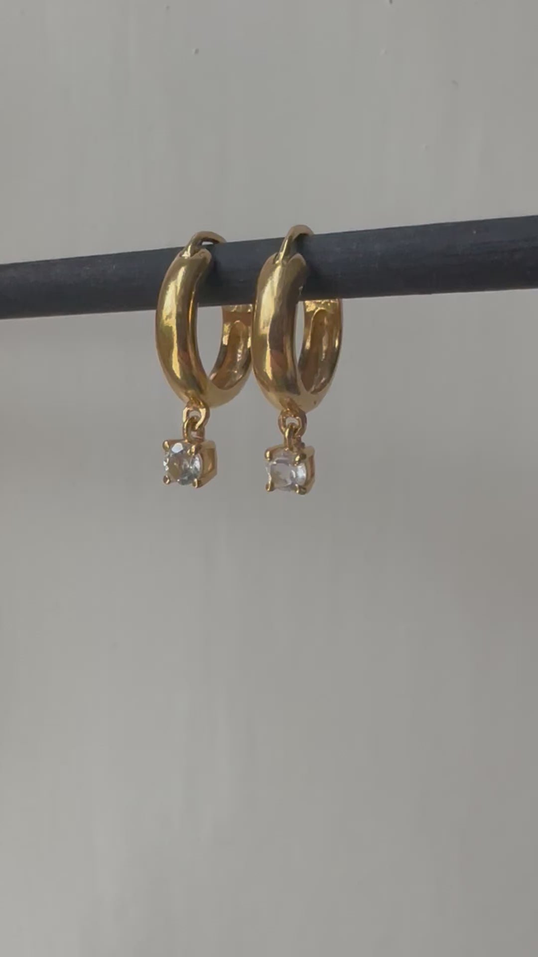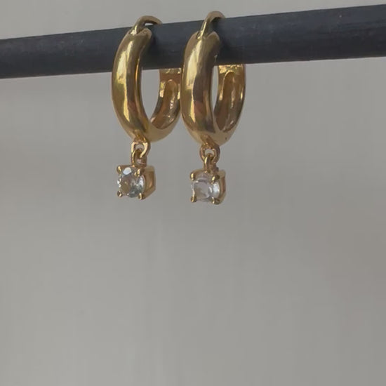 White Topaz Earrings | 18k Gold Plated | Genova Huggie Hoop Earrings